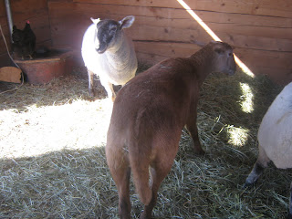 Just prior to PWF, Terry Prehara, the woman who sold Katie and Stephen their ewe lambs, emailed us to let us a know that a friend of a friend wanted to find a good home for a Khatadyn lamb. This breed has hair! It is also considered a meat breed and can lamb every 7 months. Apparently the rest of her flock was taken down by a bear (including the ram that may have impregnated this lone survivor). Not to pass up on free livestock, as well as add to our “pets” we gladly accepted this lovely ewe. Her name is Hershey and she is very sweet. We are not sure if she is actually pregnant yet but the next few months will tell. If she does lamb in the spring, I’m thinking of showing one of her offspring as an open lamb at PWF just t