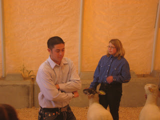 Friday was a flurry of Ivory soap, blow dryers and carding brushes. The kids managed to get their lambs coiffed but a few of them needed to be prodded along by the sheep leader. Friday was showmanship for the pre-clubbers and Helen placed third in her heat in this event. She still has another year in pre-club so we expect she will do well next year, too!