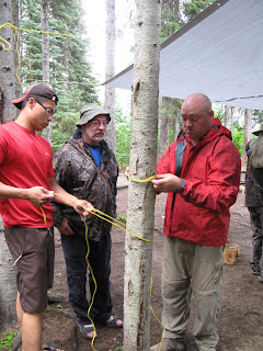 Tom decided that since it was looking a bit rainy, we should put up a tarp and lash it to trees to provide shelter for dinner and whatever festivities we could muster up while anticipating our nocturnal visitors.