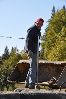 We are already looking ahead to what we can do before winter and I think we have accepted that we will not get the roof on before snow flies. We will move forward with the bond beam and I will be extremely happy if that gets poured this fall. Then, on good days, I can sand our weathered round log beams and then stain in the shop (heated). When they are stained and dried we will put them on the bond beam, putting them in place as we go. Might be able to work on other parts of the roof if we get a spate of really good weather this winter, but we are happy poking along and getting other parts lined up for a fast start in early April.